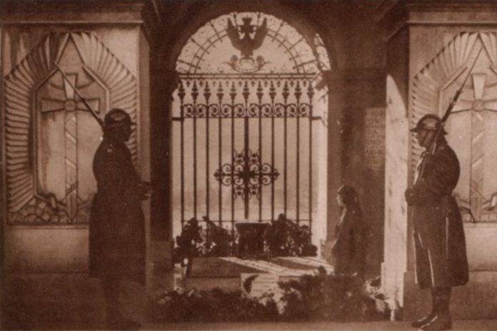 „Pierwszą wartę honorową, zaraz po przykryciu trumny płytą nagrobną wystawiali kombatanci powstania styczniowego z 1863 roku. Po uroczystości zastąpili ich żołnierze 36. Pułku Legii Akademickiej, jednostki realizującej zadania reprezentacyjne na terenie Warszawy. Przez kolejne lata pełniącymi wartę byli żołnierze różnych jednostek wojskowych, którzy wyróżniali się wysokim poziomem musztry wojskowej” – przypomina obecnie Wojsko Polskie.