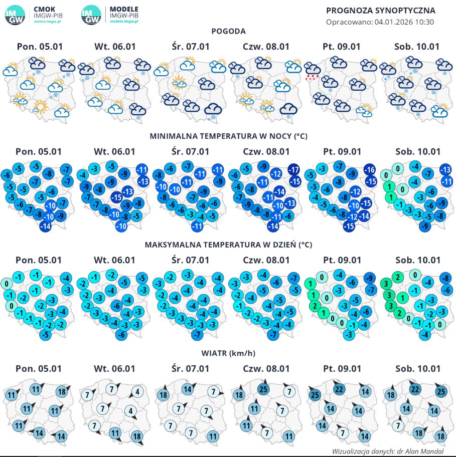 Najnowsza prognoza synoptyczna IMGW wskazuje, że nadchodzący tydzień będzie najmroźniejszy do tej pory w tym sezonie zimowym. Mróz do kilkunastu stopni poniżej zera poczujemy praktycznie w całym kraju, a nawet -20 stopni Celsjusza lokalnie nikogo nie zdziwi.