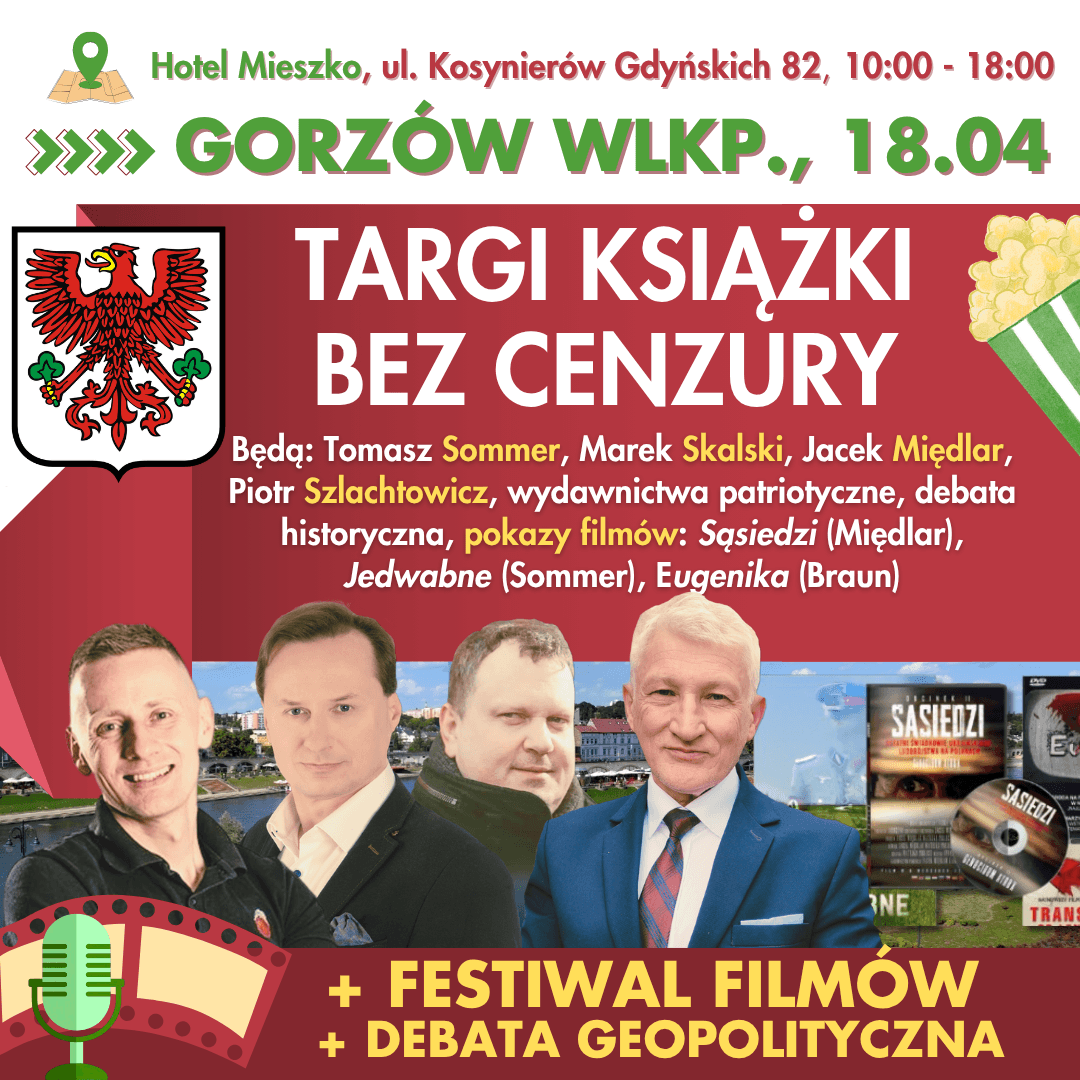 Spotkania autorskie, duże Targi Książki Bez Cenzury, Festiwal Filmów Wolnościowych (trzy pokazy!), debata geopolityczna – oto moc atrakcji, które w najbliższą sobotę (18.04) czekają na Mieszkańców Gorzowa Wielkopolskiego i okolic.